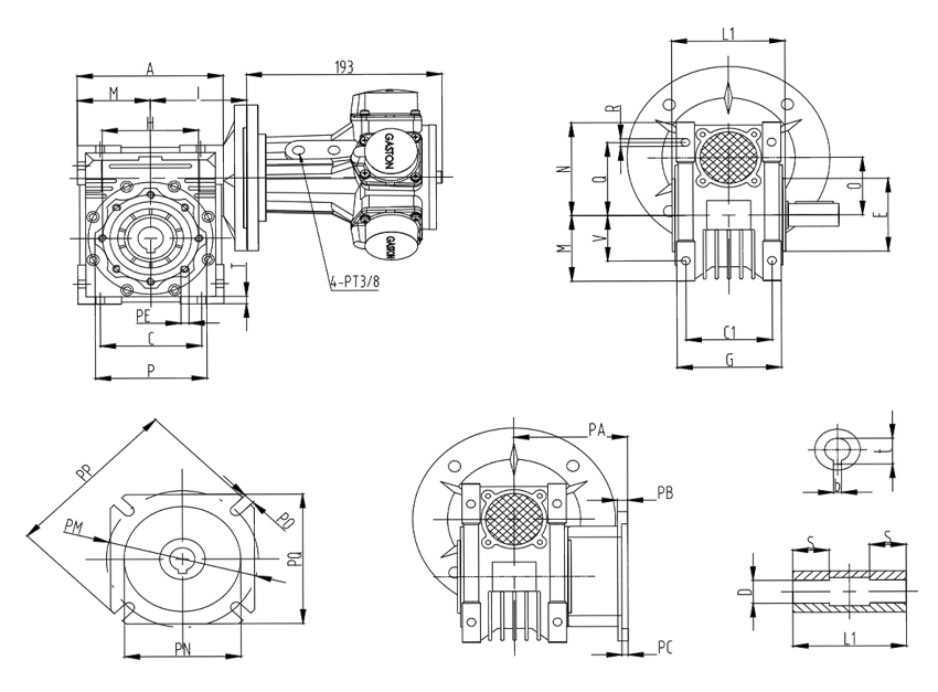AMP5-RV90-G80  |           206 8,1"  |           238 9,4"  |           140 5,5"  |           100 3,9"  |           35 1,4"  |           110 4,3"  |           130 5,1"  |           130 5,1"  |           129.5 5,1"  |           140 5,5"  |           103 4,1"  |           135 5,3"  |           90 3,5"  |           160 6,3"  |           102 4,0"  |           13 0,5"  |           45 1,8"  |           11 0,43"  |           70 2,8"  |           111 4,4"  |           13 0,5"  |           6 0,23"  |           M10X18(n=8)  |           175 6,9"  |           152 6,0"  |           14(n=4) 0,6"  |           210 8,3"  |           200 7,9"  |           10 0,4"  |           38.3 1,5"  |